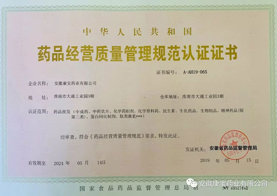 公司地址:安徽省淮南市大通區大通工業園三期淮南康寶藥業有限公司