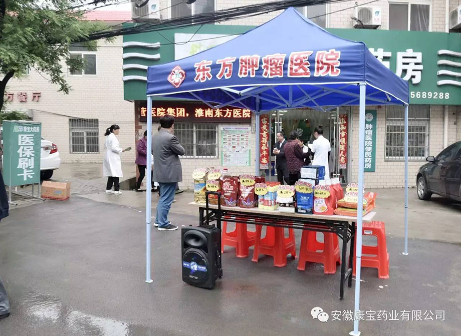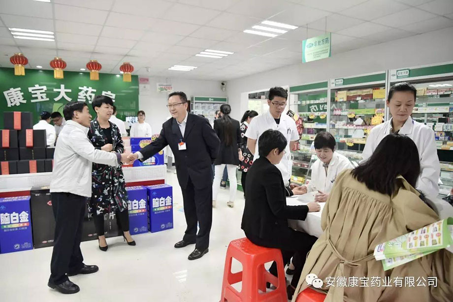 為保證店慶活動順利進行,醫(yī)院集團董事長江鴻方、康寶藥業(yè)董事長朱興林冒著風雨,親臨現(xiàn)場布置工作。兄弟單位領導也早早的來到藥店,忙前忙后,給予大力支持。