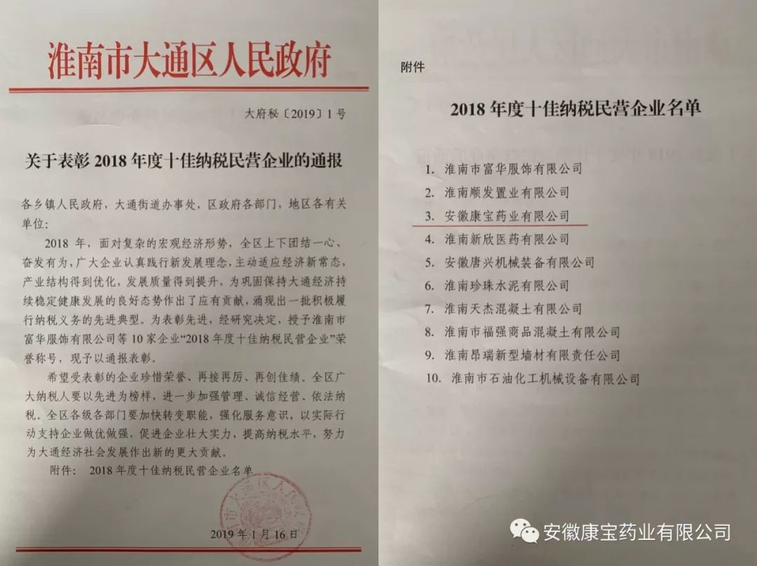 1月18日上午,“全區促進民營經濟發展大會”在大通區政府機關禮堂隆重召開。會上,康寶藥業被大通區人民政府授予“十佳納稅民營企業”榮譽稱號。
